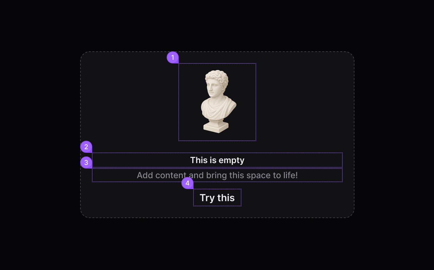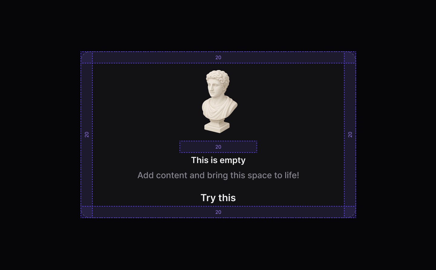 ✅ Use when another component or part of the UI has no items or data to show | ⛔️ Use as a generic banner to highlight specific content |
