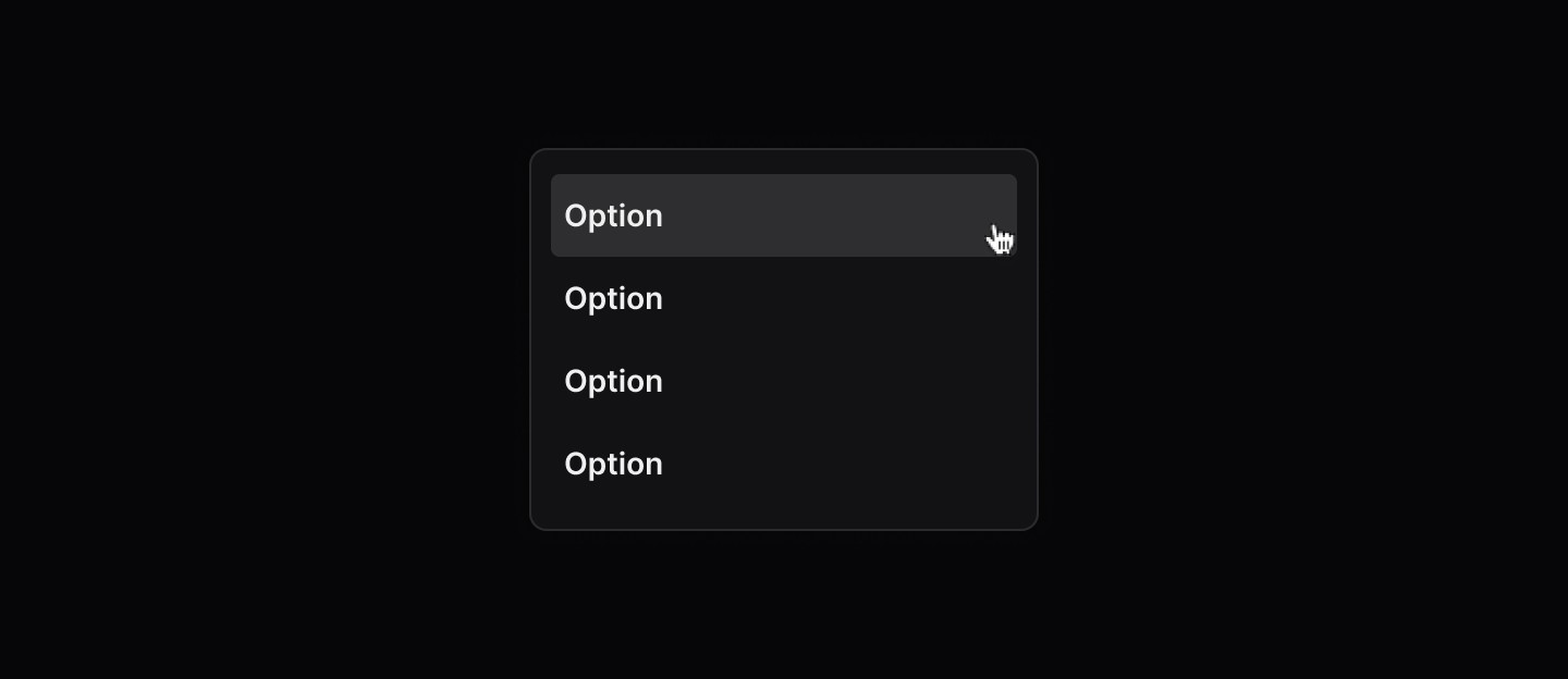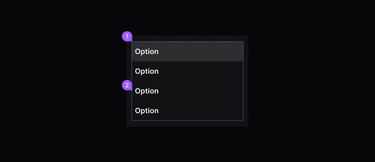 Use this component inside other elements like Popover or Select to present a grouped list of items or options. Each option can be configured independently, while grouping enables flexible customisation and clearer organisation.
