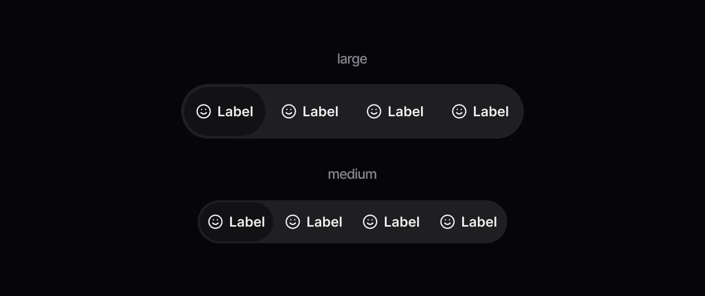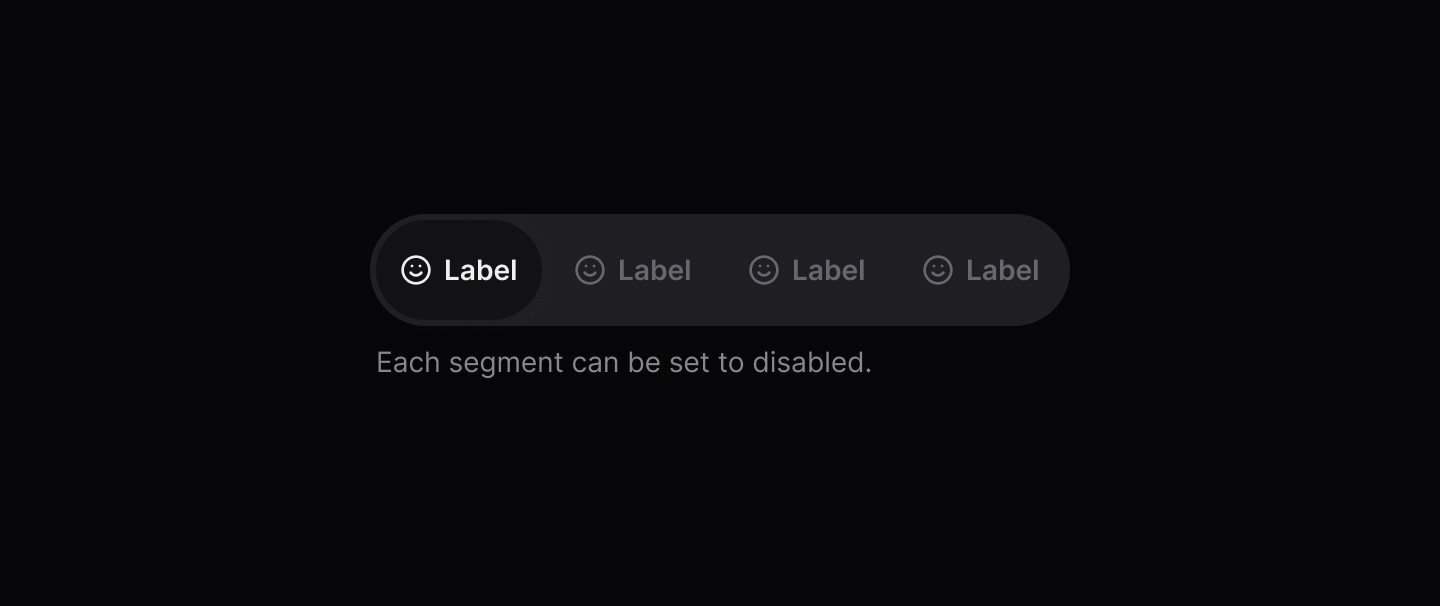 Using the toggle selects a label from the set and deselects the previously chosen option. The tile behind the active segment slides along the track to sit behind the newest selection.