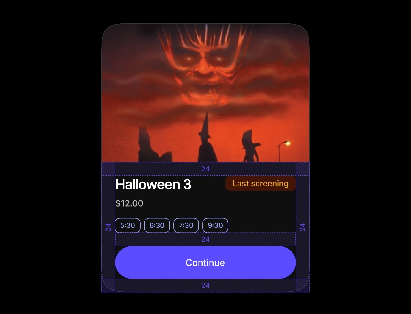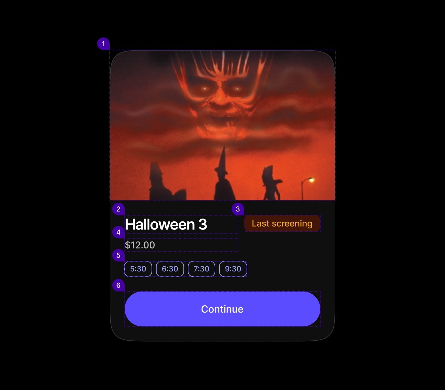 Time/option-based cards with badge arrays for booking and scheduling