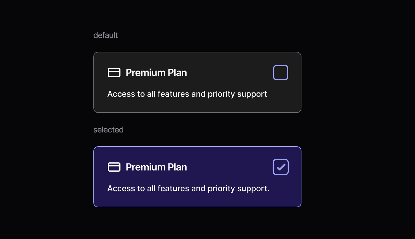 ✅ Use them in forms to toggle features that require an explicit submit or confirmation. | ⛔️ Avoid checkboxes when changes should apply instantly, use a switch for real-time toggles. |