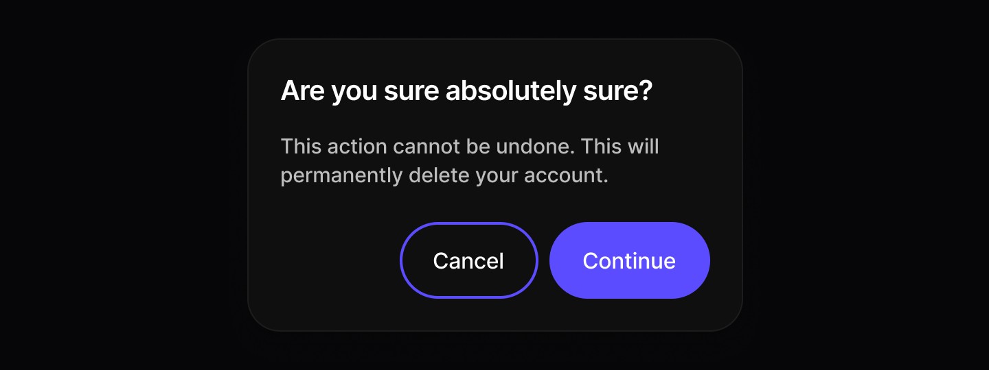 ✅ Trigger when user action is required. | ⛔️ Don’t use if the user needs extra information that isn’t available within the modal. |